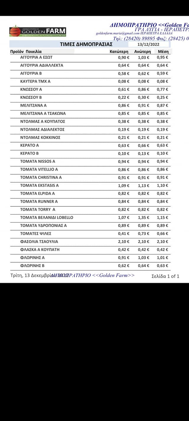 • Τιμές κηπευτικών Ιεράπετρας 13-12-2022