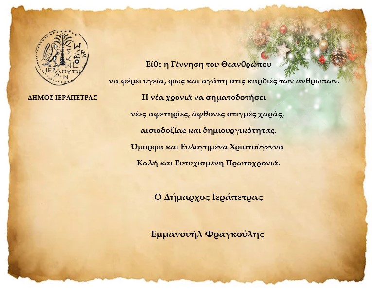 Στους δύσκολους καιρούς που διανύουμε, ως Δήμαρχος Ιεράπετρας, εύχομαι από